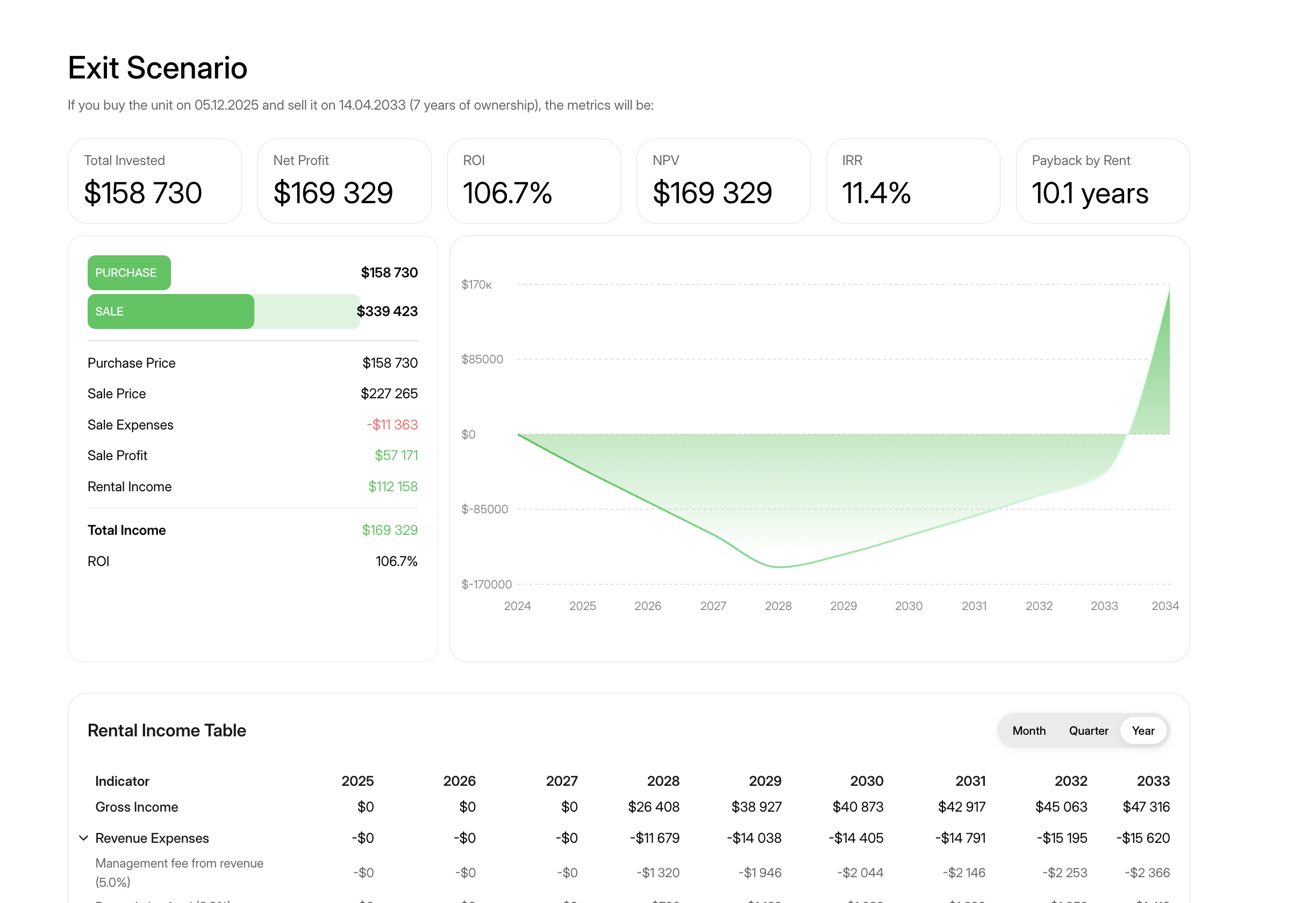 You sell investment property. Our tools are designed to sell asset value, offering detailed financial models (ROI, IRR, NPV). Unitbox is ideal for investment-oriented projects.